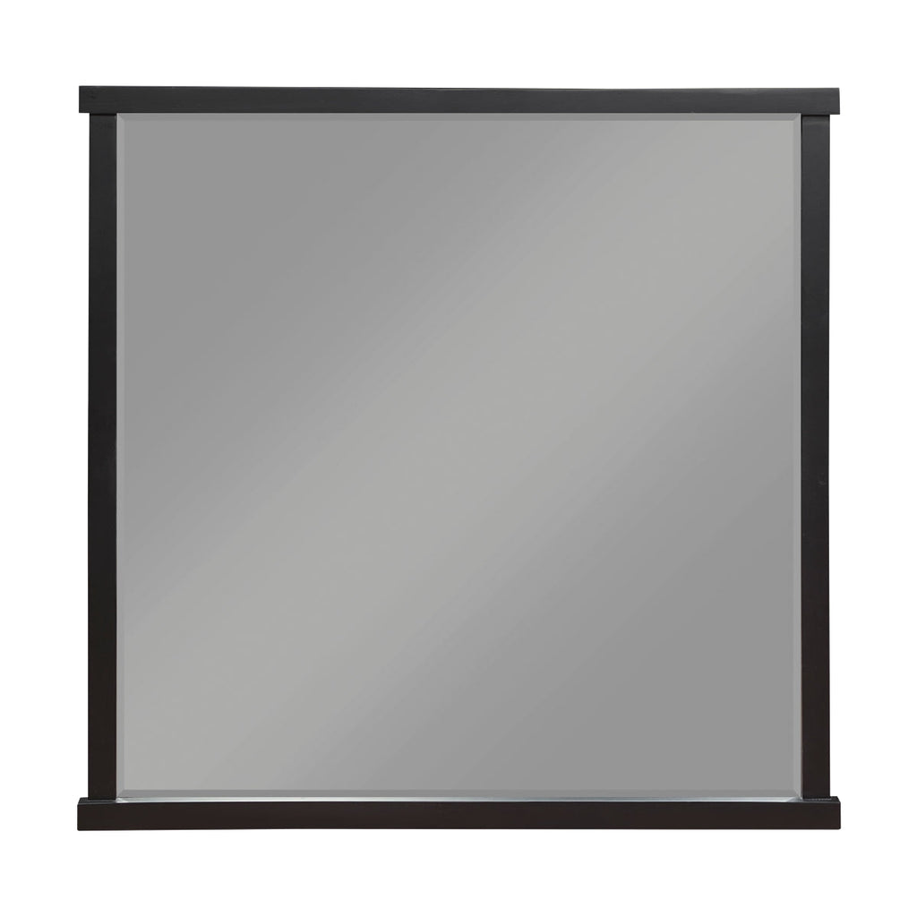 Modern lines pair with texture and hue to create the dynamic look of the Acworth Collection. The black finish over oak veneer of the mirror's frame lends to the modern-industrial inspired aesthetic that comprises the collection’s design.
