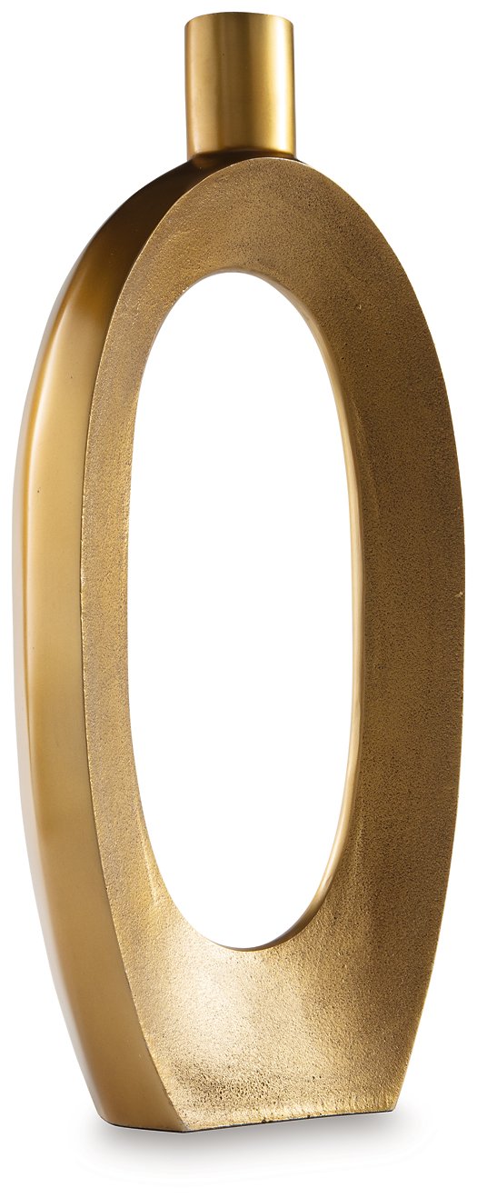 Geometric forms get a glam upgrade in this vase. Decidedly contemporary with its sculptural silhouette, it ushers a confidently curated vibe into your space. The goldtone finish brings an eye-catching metallic flair to your mantel, bookshelf or centerpiece arrangement.