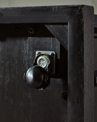 - Top with layered light brown finish; body with matte black finish