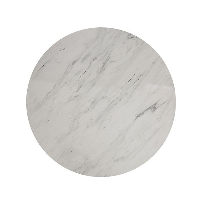 A simple yet futuristic design, this non-cumbersome table benefits from the simplicity of sparse material. The gorgeous faux marble top adds a bit of class to any sitting experience. It's a classic case of 'less is more' when it comes to this setup. Available in dining or coffee table designs.